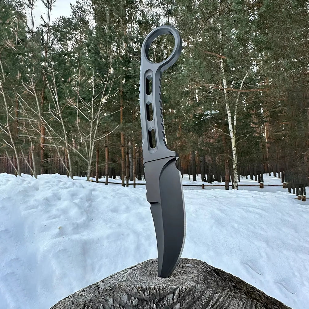 • Full-Tang Fixed Blade Construction: Engineered with a single, continuous piece of steel extending from the blade's tip through the entire handle. This robust full-tang design guarantees unmatched strength, perfect balance, and maximum shock absorption, making it virtually indestructible.