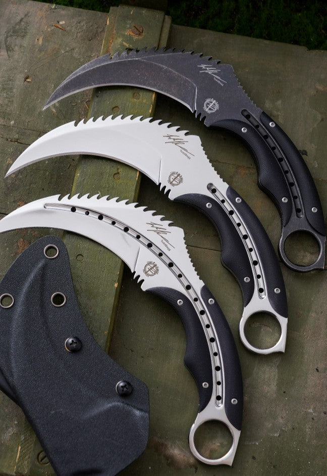 Experience the perfect blend of rugged durability and precision craftsmanship with the Todd's Claw fixed blade knife. Engineered for everyday carry (EDC) and demanding tasks, this formidable tool features a high-performance 8Cr18MoV steel blade, an ergonomic G10 handle, and a robust Kydex sheath. Available in sleek Black, classic White, and a distinctive Grooved White, the Todd's Claw is designed to be your reliable companion, offering superior edge retention and unwavering performance in any situation.