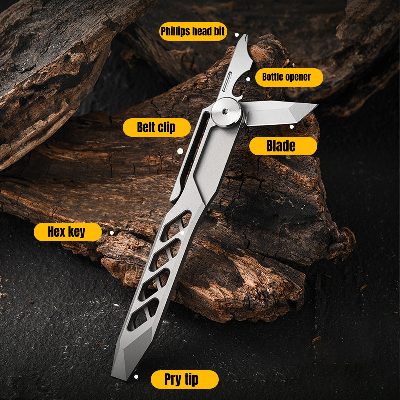 Introducing the AeroTitan Titanium EDC Pry Bar– your ultimate everyday carry companion designed for discrete personal protection. Crafted from premium titanium alloy, this compact and robust tool offers unparalleled strength and corrosion resistance at an incredibly low density. Its sleek, minimalist design, born from precision CNC cutting and integrated molding, ensures it’s always with you, effortlessly blending into your daily essentials. Lightweight and ergonomic, the AeroTitan is more than just a tool – it's a statement of preparedness, offering peace of mind and discreet self-defense capability when you need it most.
