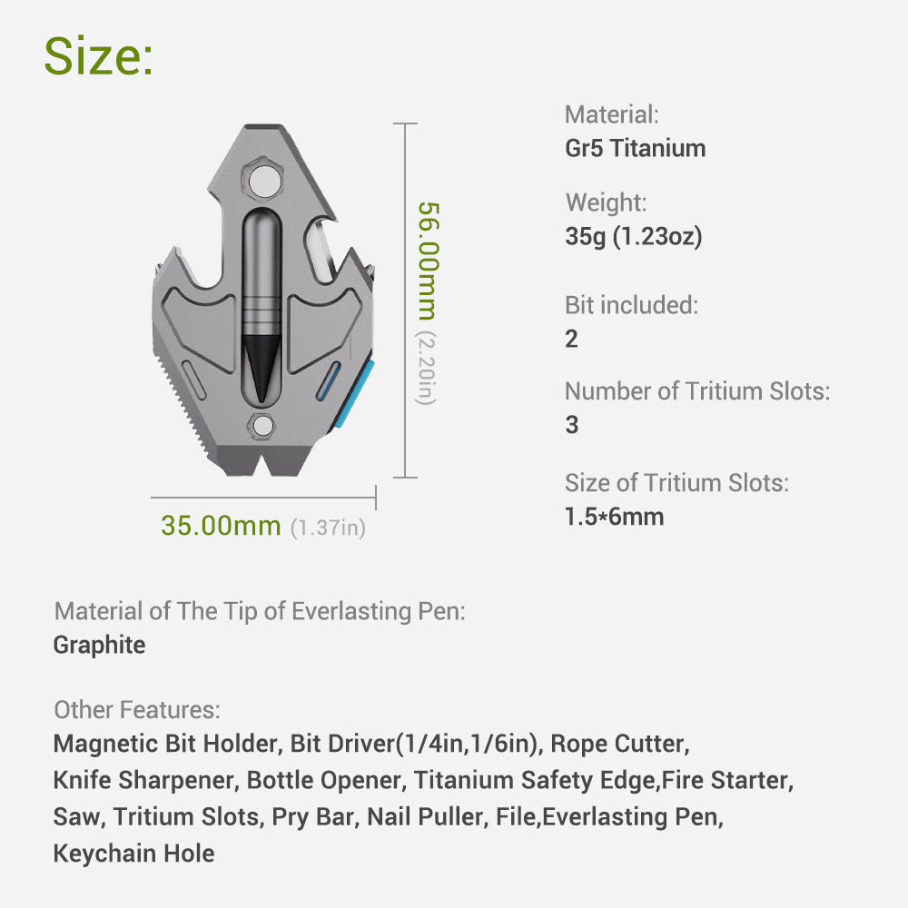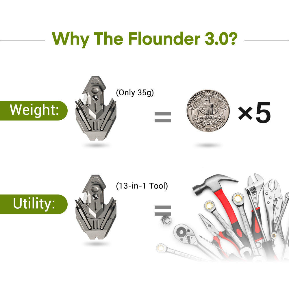Small in size, massive in capability — The Flounder 3.0 is a titanium all-in-one pendant built for makers, travelers, and everyday problem-solvers. Its two-piece safe-edge blade design handles daily cutting tasks without risk, while a built-in magnetic pen, dual screwdriver bits, and 13 integrated tools give you true readiness in a compact, wearable form. Crafted from premium titanium, this micro-tool stays light, tough, and always ready wherever life takes you.