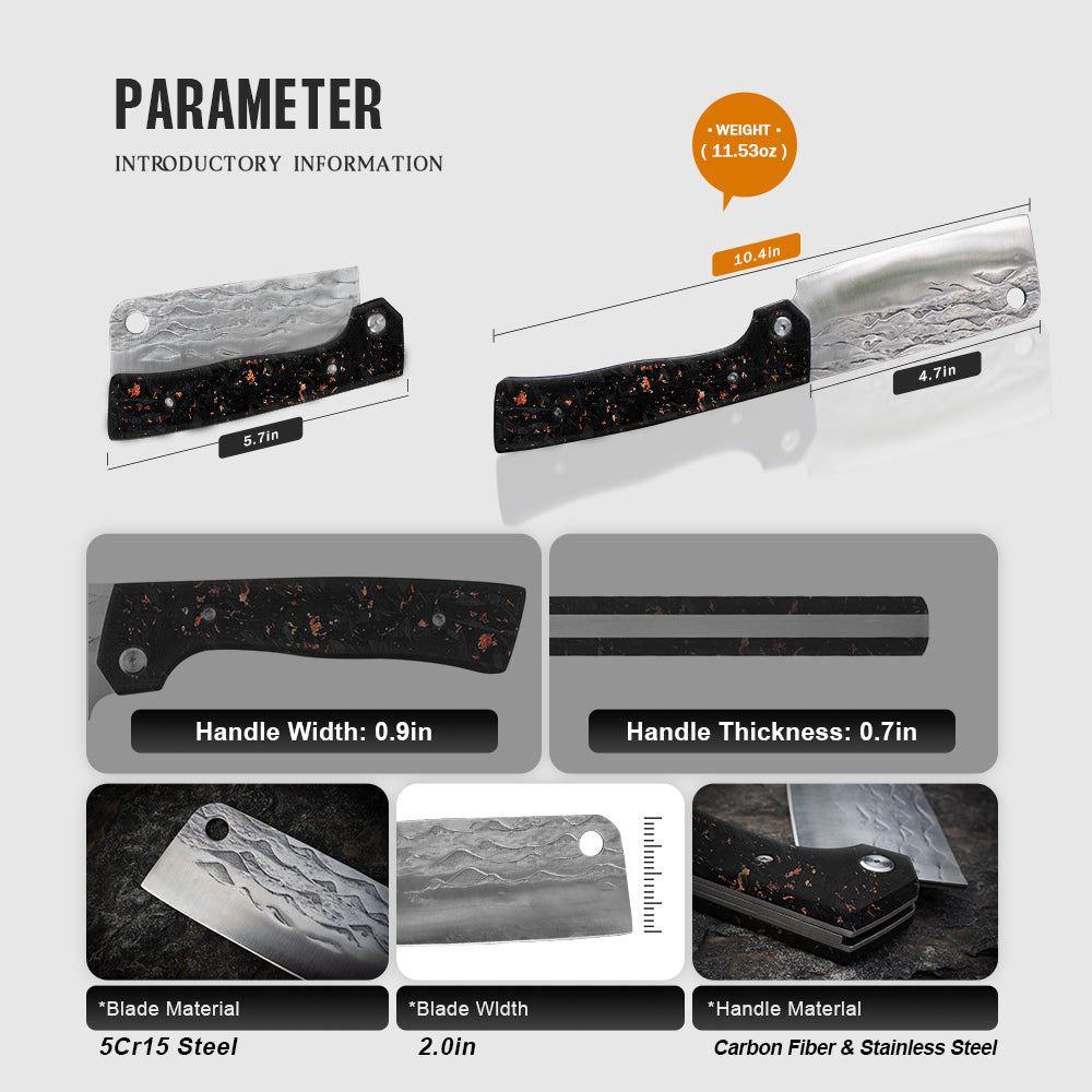 The FoldChef delivers full-size cutting performance in a compact, pocket-ready design, combining high-carbon steel strength with a lightweight carbon fiber handle for outdoor cooking, travel, and everyday prep.