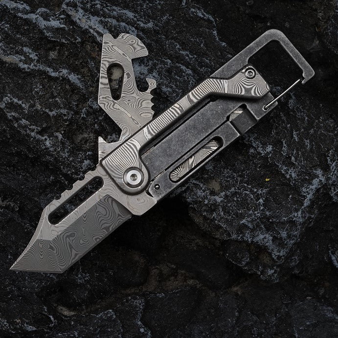 The Dual-Action Blade: 9-in-1 Damascus Keychain Folding Knife