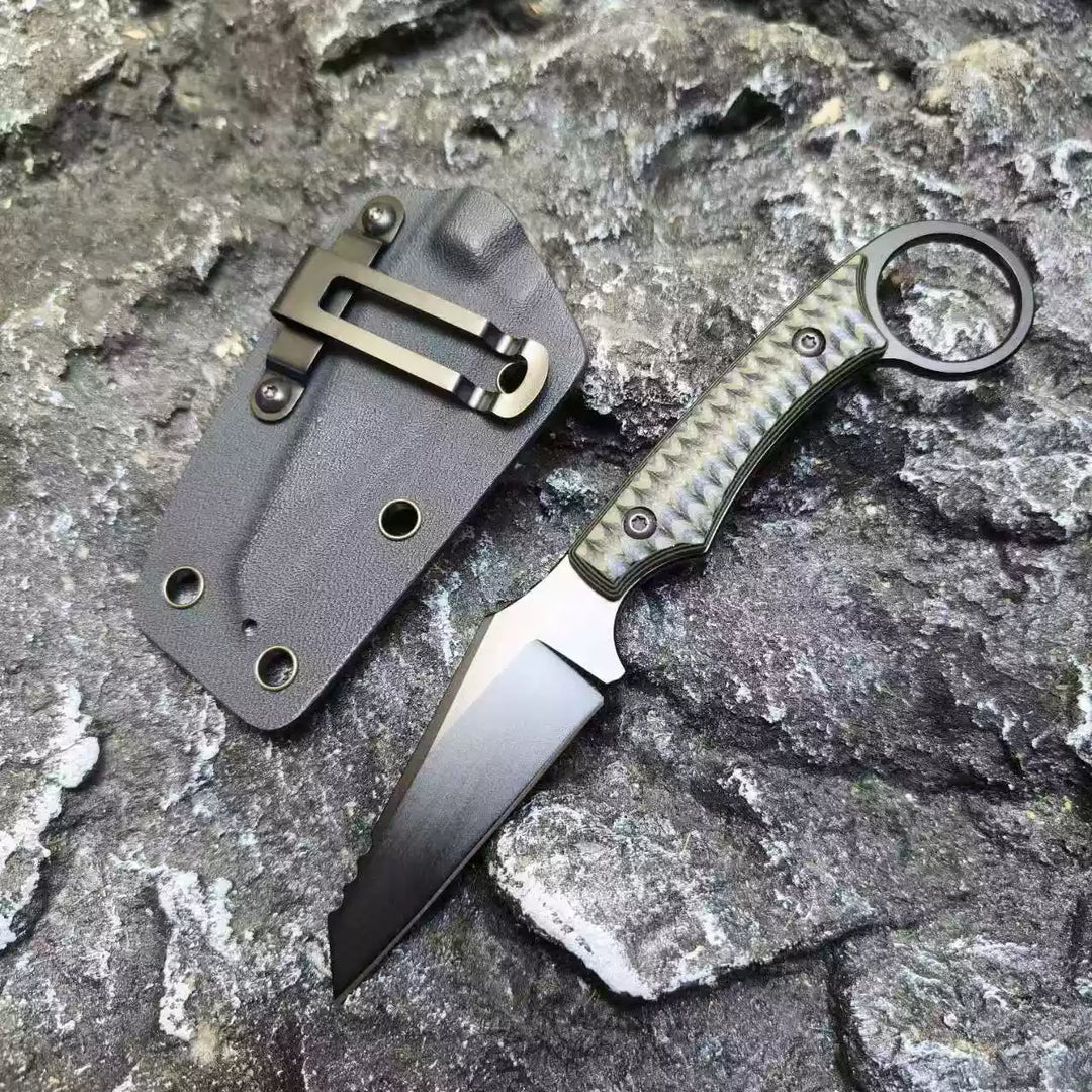 • Premium D2 Tool Steel Blade: Expertly forged from D2 steel, renowned for its outstanding wear resistance, toughness, and long-lasting edge retention. This blade is built for demanding use.