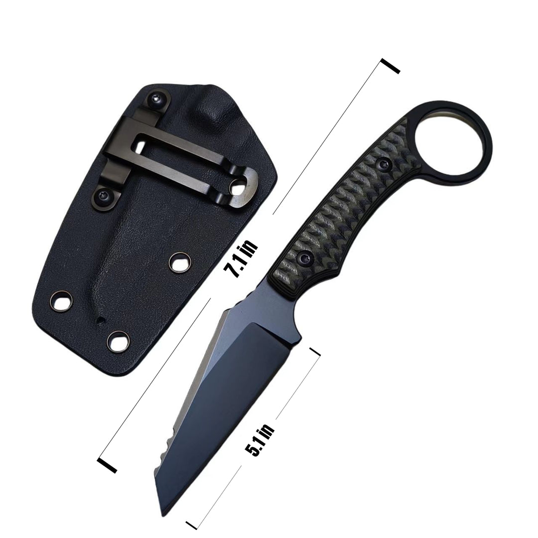 Introducing the Demon D2 Steel Fixed Blade Knife, a robust and versatile tool engineered for peak performance. Featuring premium D2 tool steel hardened to 59HRC, this 7.1-inch (18cm) blade offers exceptional edge retention and durability. The ergonomic G10 handle provides a comfortable and secure grip, making it ideal for hunting, outdoor adventures, and tactical applications. Experience the fusion of superior craftsmanship and reliable functionality.