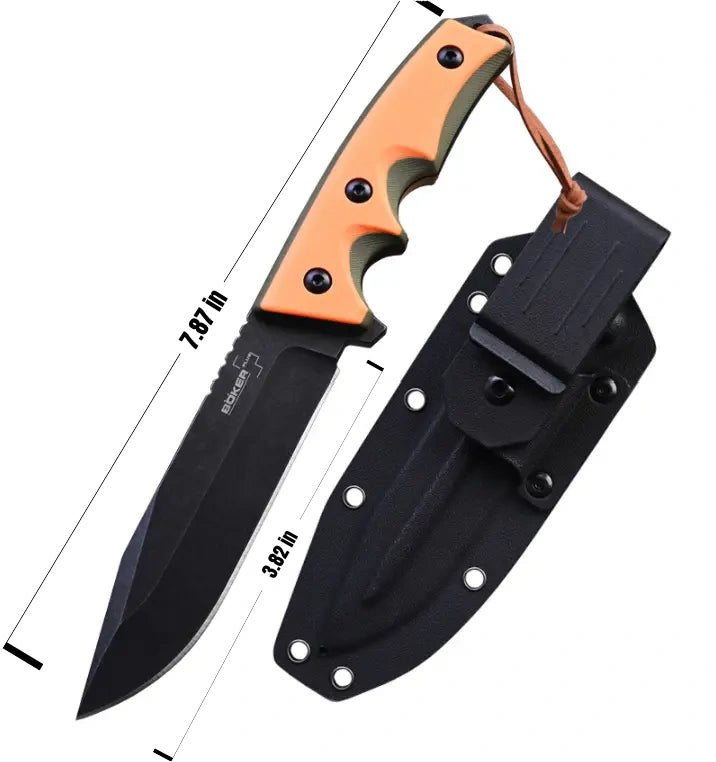 BlazeOrange Tactical Survivor: Heavy-Duty Fixed Blade Knife with CNC Black Stonewash Finish