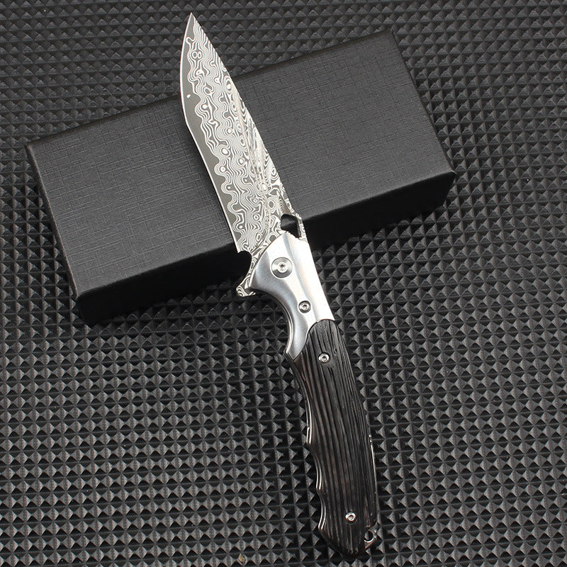 The Dual-Action Blade: 9-in-1 Damascus Keychain Folding Knife